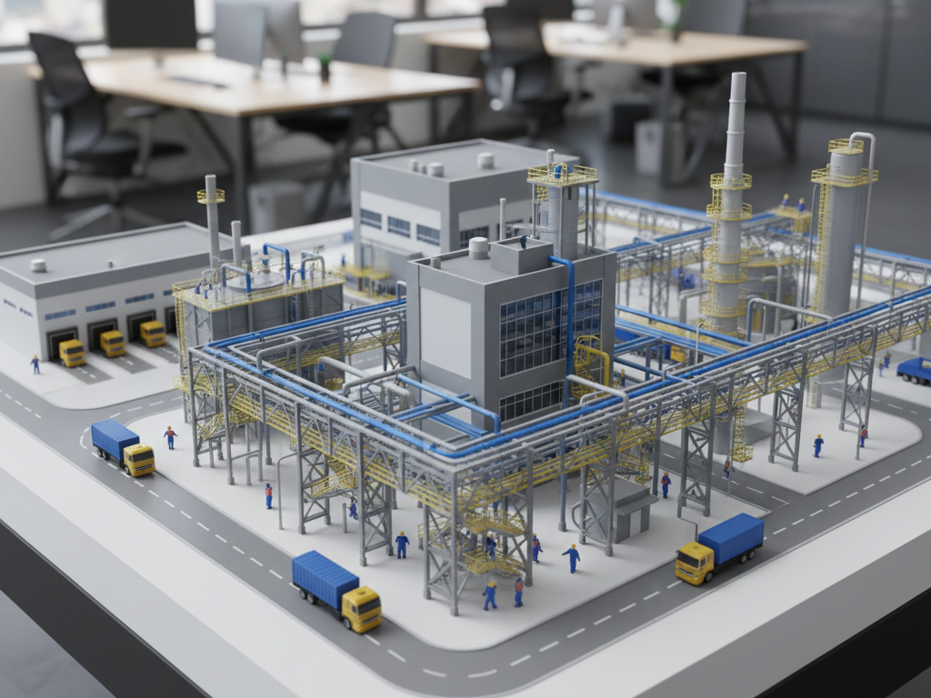 Una maqueta industrial es una herramienta de visualización técnica a escala de la infraestructura, maquinaria y/o flujos de trabajo dentro de un edificio industrial.